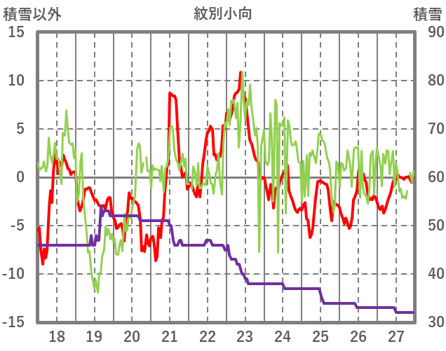 | 日 | 時 | 気温 | 降水 | 風向/風速 | 日照 | 積雪 | 降雪 |