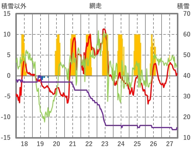 | 日 | 時 | 気温 | 降水 | 風向/風速 | 日照 | 積雪 | 降雪 |