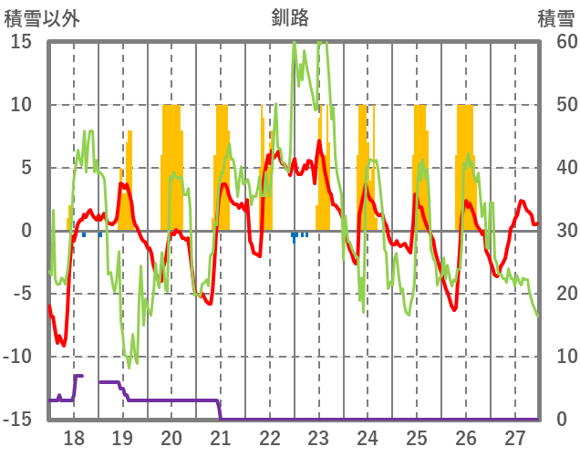 | 日 | 時 | 気温 | 降水 | 風向/風速 | 日照 | 積雪 | 降雪 |