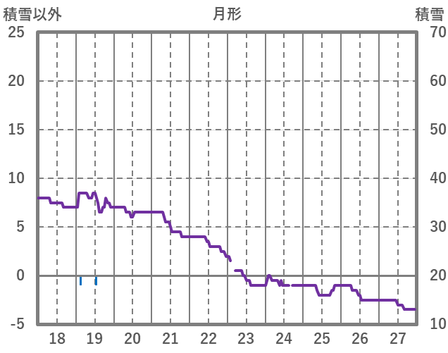 | 日 | 時 | 気温 | 降水 | 風向/風速 | 日照 | 積雪 | 降雪 |
