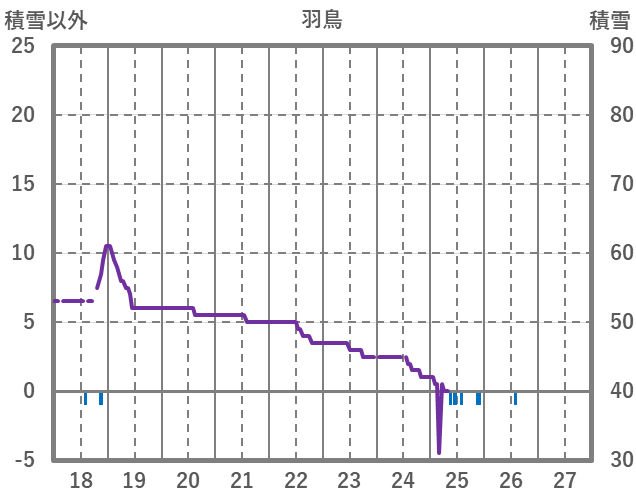 | 日 | 時 | 気温 | 降水 | 風向/風速 | 日照 | 積雪 | 降雪 |