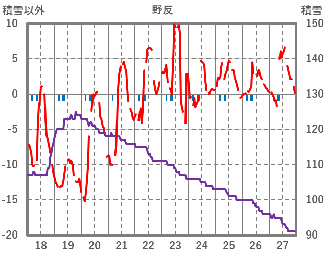 | 日 | 時 | 気温 | 降水 | 風向/風速 | 日照 | 積雪 | 降雪 |
