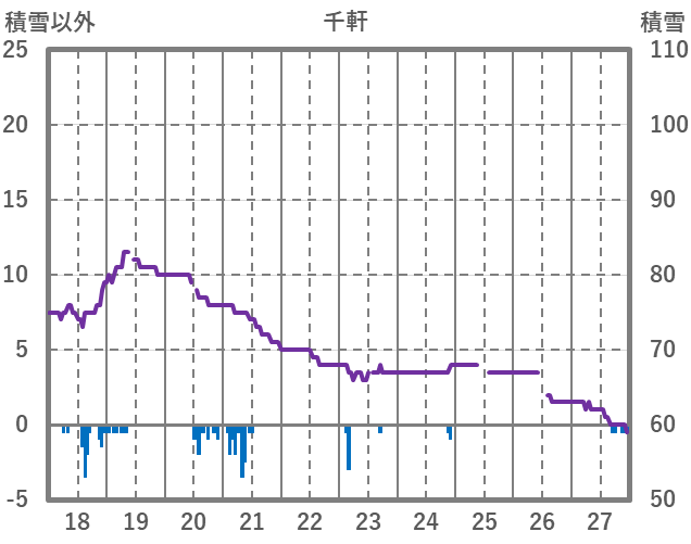 | 日 | 時 | 気温 | 降水 | 風向/風速 | 日照 | 積雪 | 降雪 |