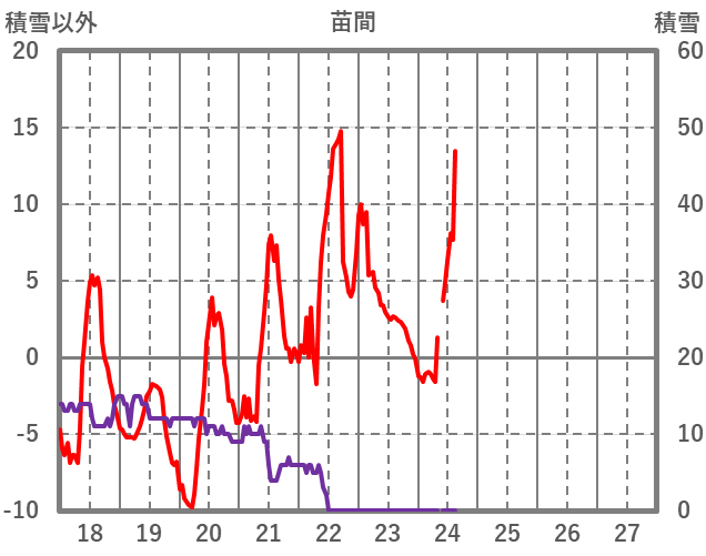 | 日 | 時 | 気温 | 降水 | 風向/風速 | 日照 | 積雪 | 降雪 |