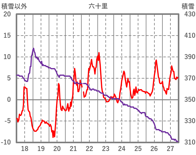 | 日 | 時 | 気温 | 降水 | 風向/風速 | 日照 | 積雪 | 降雪 |