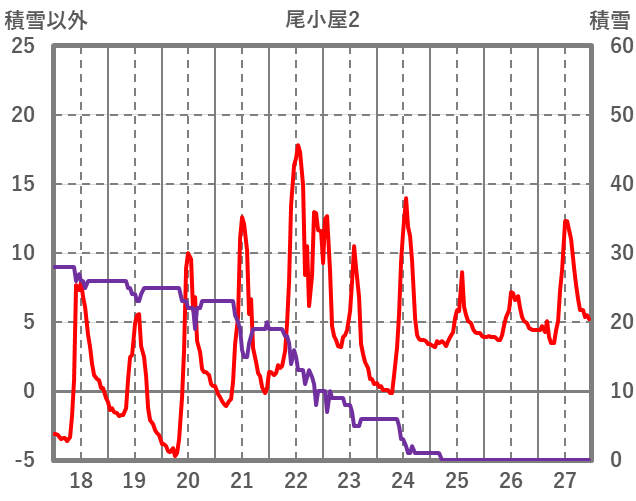 | 日 | 時 | 気温 | 降水 | 風向/風速 | 日照 | 積雪 | 降雪 |