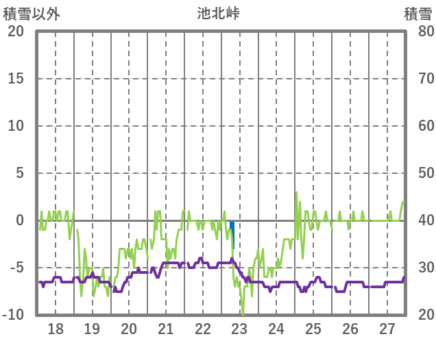 | 日 | 時 | 気温 | 降水 | 風向/風速 | 日照 | 積雪 | 降雪 |