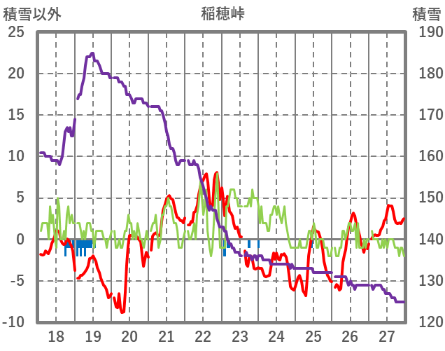 | 日 | 時 | 気温 | 降水 | 風向/風速 | 日照 | 積雪 | 降雪 |
