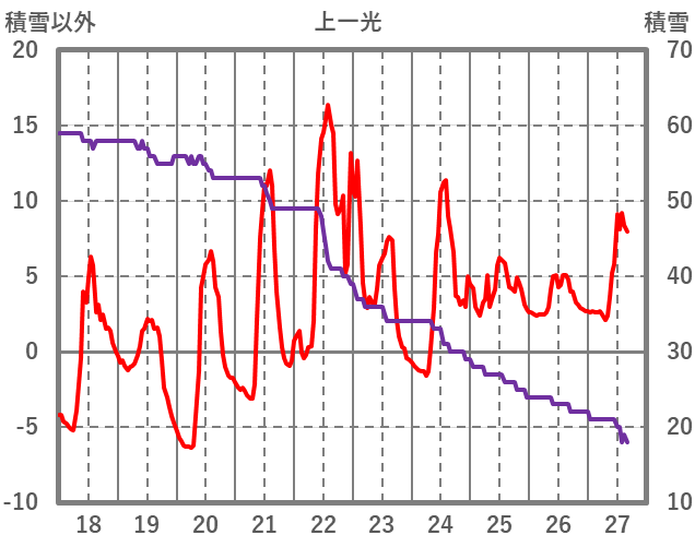 | 日 | 時 | 気温 | 降水 | 風向/風速 | 日照 | 積雪 | 降雪 |