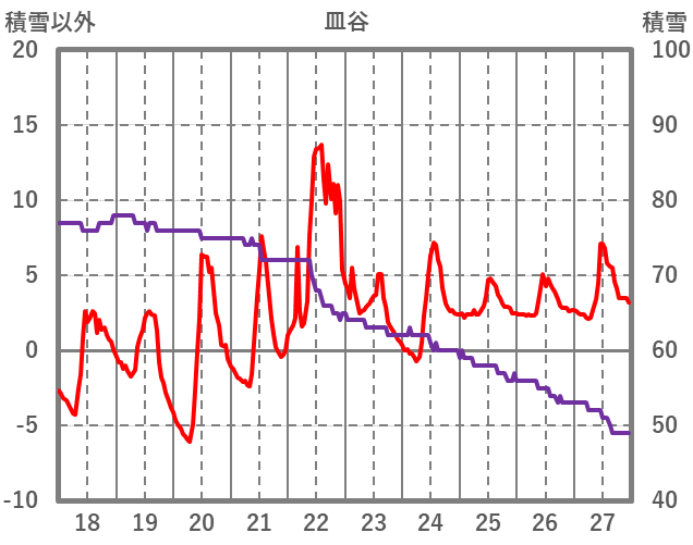 | 日 | 時 | 気温 | 降水 | 風向/風速 | 日照 | 積雪 | 降雪 |