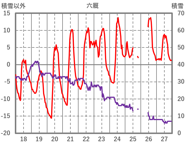 | 日 | 時 | 気温 | 降水 | 風向/風速 | 日照 | 積雪 | 降雪 |