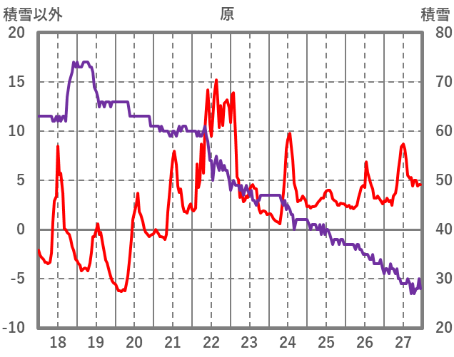| 日 | 時 | 気温 | 降水 | 風向/風速 | 日照 | 積雪 | 降雪 |