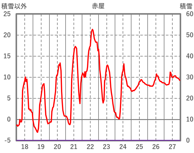 | 日 | 時 | 気温 | 降水 | 風向/風速 | 日照 | 積雪 | 降雪 |