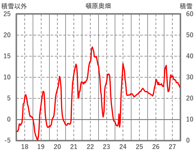 | 日 | 時 | 気温 | 降水 | 風向/風速 | 日照 | 積雪 | 降雪 |