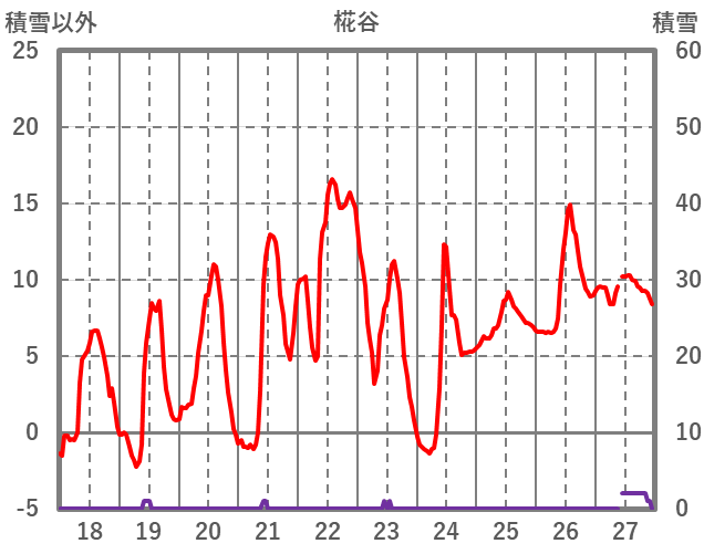| 日 | 時 | 気温 | 降水 | 風向/風速 | 日照 | 積雪 | 降雪 |