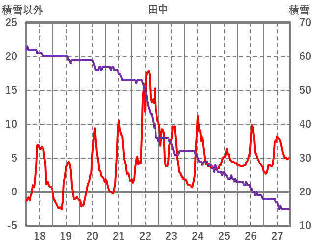 | 日 | 時 | 気温 | 降水 | 風向/風速 | 日照 | 積雪 | 降雪 |