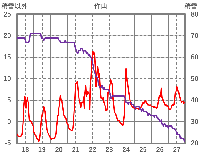 | 日 | 時 | 気温 | 降水 | 風向/風速 | 日照 | 積雪 | 降雪 |