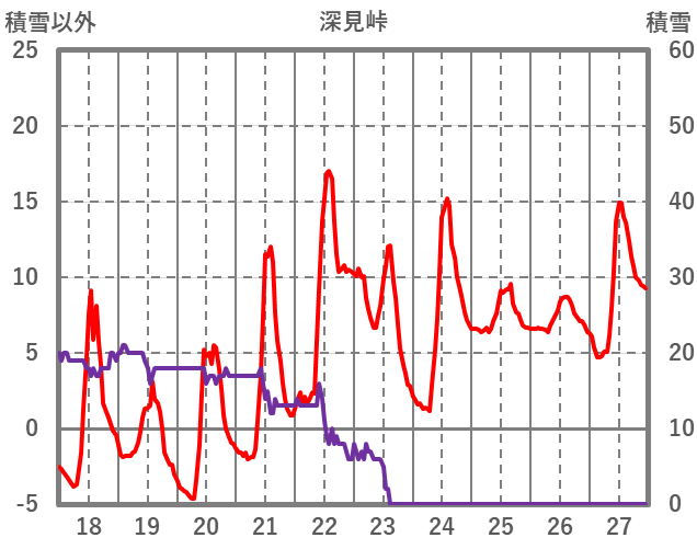 | 日 | 時 | 気温 | 降水 | 風向/風速 | 日照 | 積雪 | 降雪 |