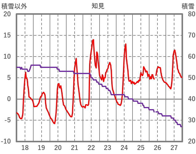 | 日 | 時 | 気温 | 降水 | 風向/風速 | 日照 | 積雪 | 降雪 |
