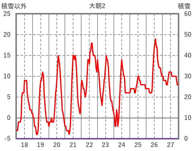 | 日 | 時 | 気温 | 降水 | 風向/風速 | 日照 | 積雪 | 降雪 |