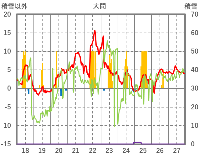 | 日 | 時 | 気温 | 降水 | 風向/風速 | 日照 | 積雪 | 降雪 |