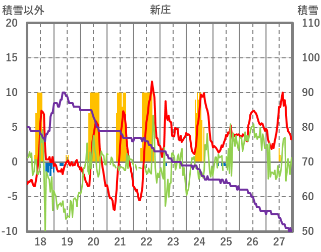 | 日 | 時 | 気温 | 降水 | 風向/風速 | 日照 | 積雪 | 降雪 |