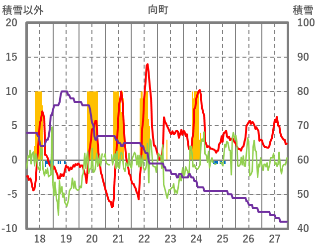 | 日 | 時 | 気温 | 降水 | 風向/風速 | 日照 | 積雪 | 降雪 |
