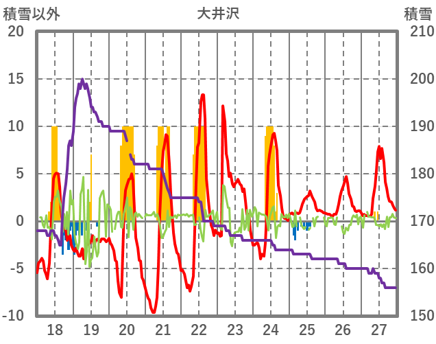 | 日 | 時 | 気温 | 降水 | 風向/風速 | 日照 | 積雪 | 降雪 |
