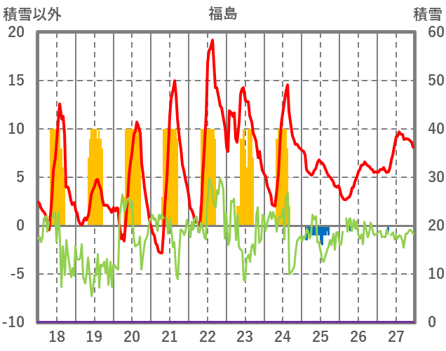 | 日 | 時 | 気温 | 降水 | 風向/風速 | 日照 | 積雪 | 降雪 |