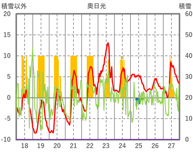 | 日 | 時 | 気温 | 降水 | 風向/風速 | 日照 | 積雪 | 降雪 |