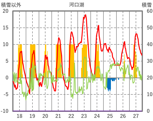 | 日 | 時 | 気温 | 降水 | 風向/風速 | 日照 | 積雪 | 降雪 |