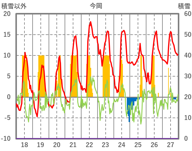 | 日 | 時 | 気温 | 降水 | 風向/風速 | 日照 | 積雪 | 降雪 |