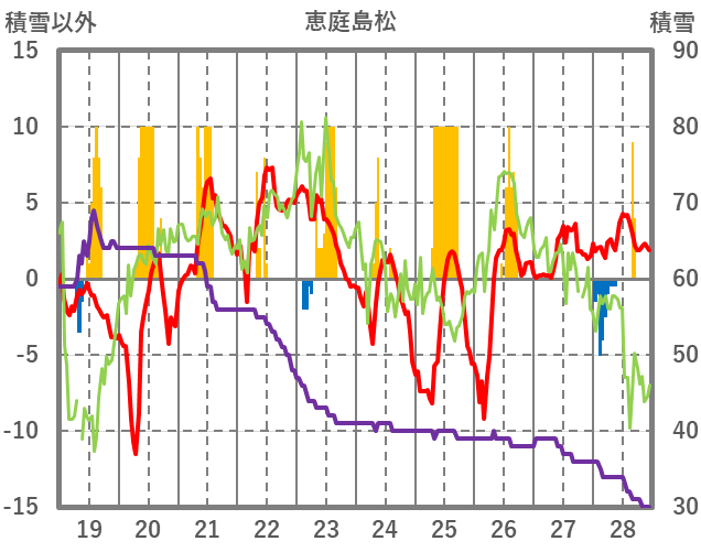 | 日 | 時 | 気温 | 降水 | 風向/風速 | 日照 | 積雪 | 降雪 |