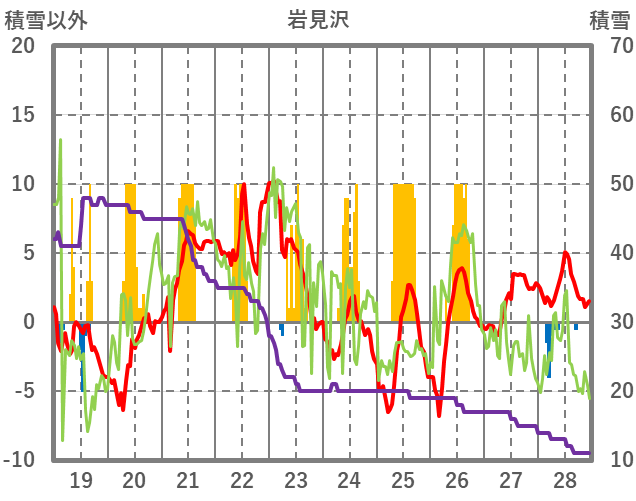 | 日 | 時 | 気温 | 降水 | 風向/風速 | 日照 | 積雪 | 降雪 |