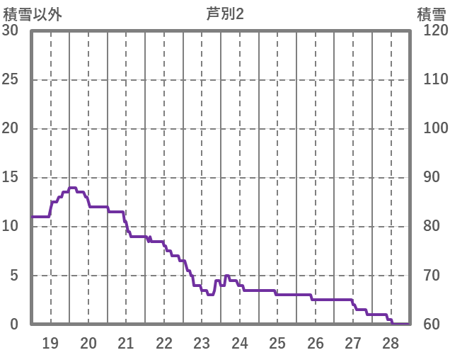 | 日 | 時 | 気温 | 降水 | 風向/風速 | 日照 | 積雪 | 降雪 |