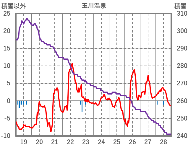 | 日 | 時 | 気温 | 降水 | 風向/風速 | 日照 | 積雪 | 降雪 |