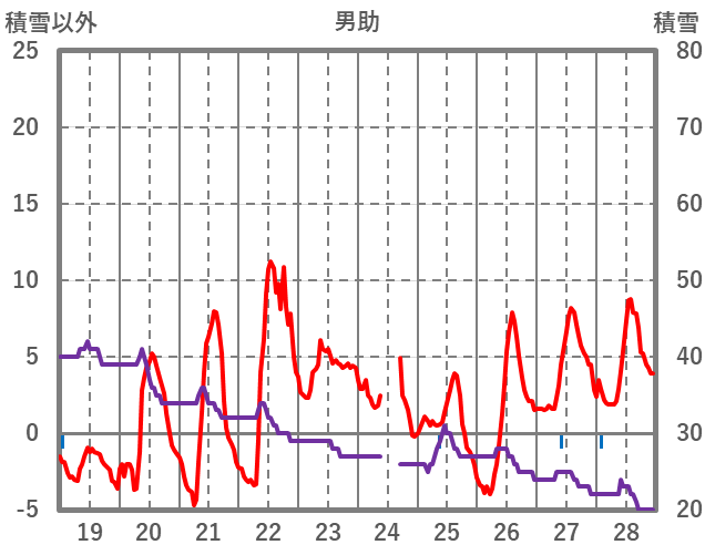 | 日 | 時 | 気温 | 降水 | 風向/風速 | 日照 | 積雪 | 降雪 |