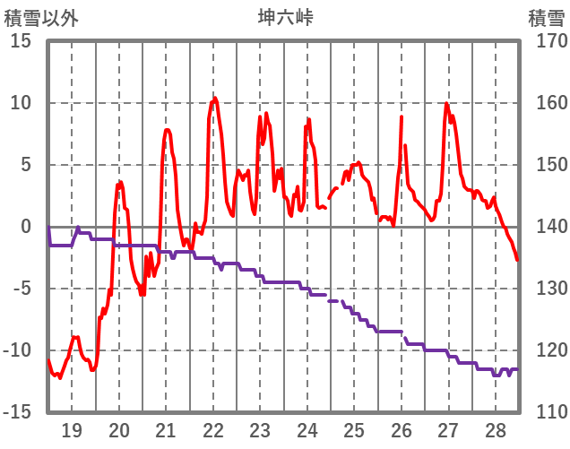 | 日 | 時 | 気温 | 降水 | 風向/風速 | 日照 | 積雪 | 降雪 |