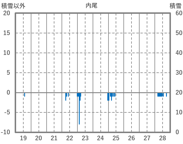 | 日 | 時 | 気温 | 降水 | 風向/風速 | 日照 | 積雪 | 降雪 |