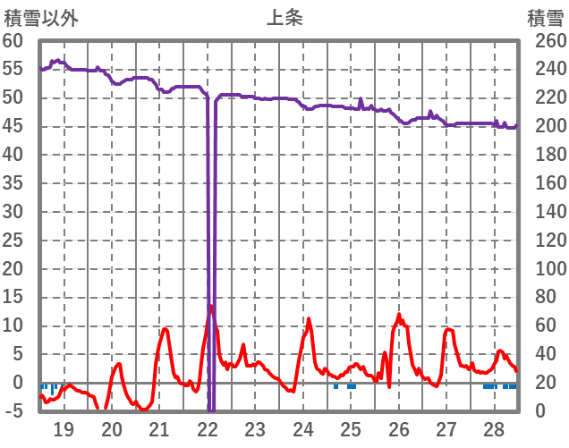 | 日 | 時 | 気温 | 降水 | 風向/風速 | 日照 | 積雪 | 降雪 |