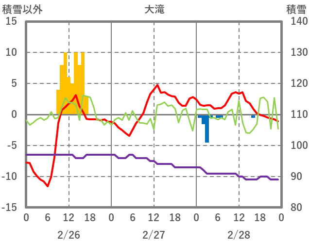 | 日 | 時 | 気温 | 降水 | 風向/風速 | 日照 | 積雪 | 降雪 |
