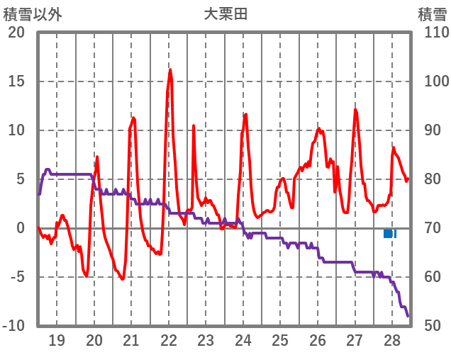 | 日 | 時 | 気温 | 降水 | 風向/風速 | 日照 | 積雪 | 降雪 |