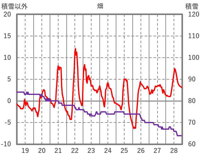 | 日 | 時 | 気温 | 降水 | 風向/風速 | 日照 | 積雪 | 降雪 |