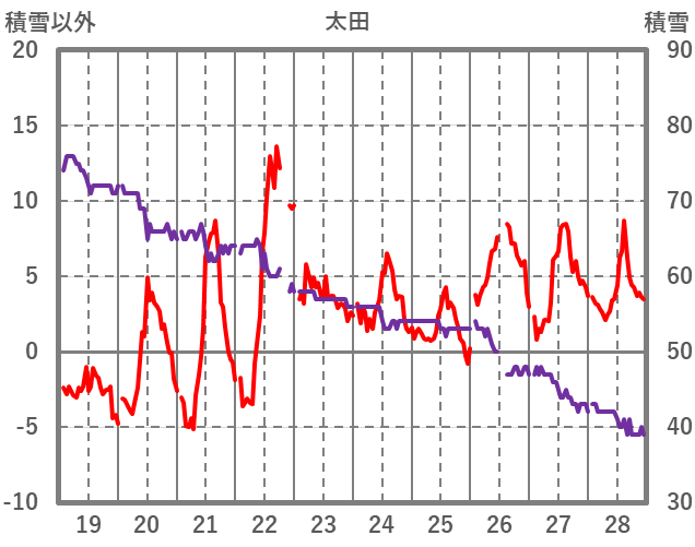 | 日 | 時 | 気温 | 降水 | 風向/風速 | 日照 | 積雪 | 降雪 |