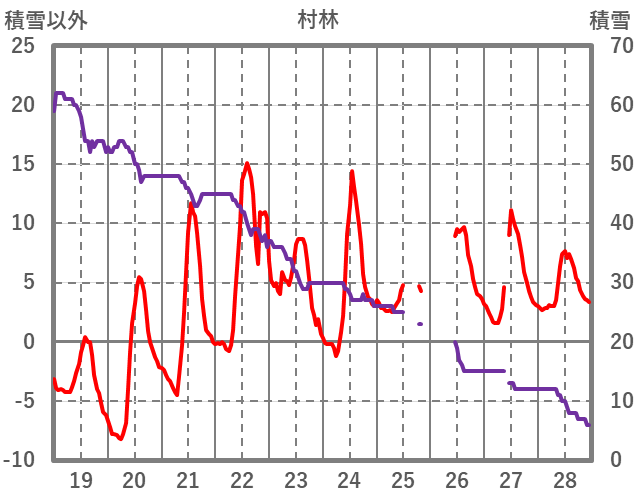 | 日 | 時 | 気温 | 降水 | 風向/風速 | 日照 | 積雪 | 降雪 |
