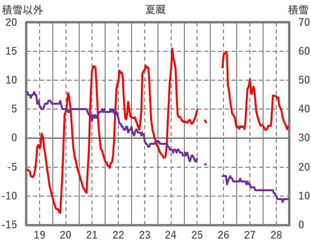 | 日 | 時 | 気温 | 降水 | 風向/風速 | 日照 | 積雪 | 降雪 |