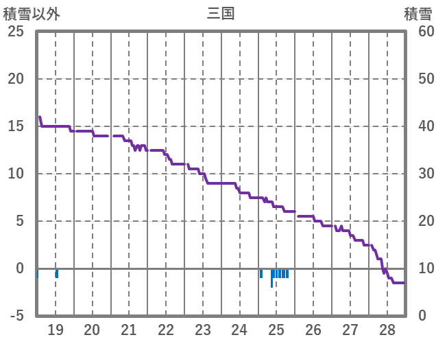 | 日 | 時 | 気温 | 降水 | 風向/風速 | 日照 | 積雪 | 降雪 |