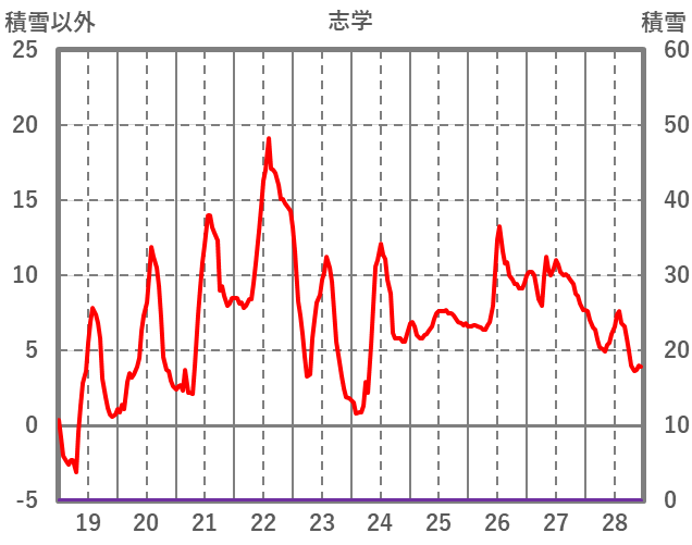 | 日 | 時 | 気温 | 降水 | 風向/風速 | 日照 | 積雪 | 降雪 |