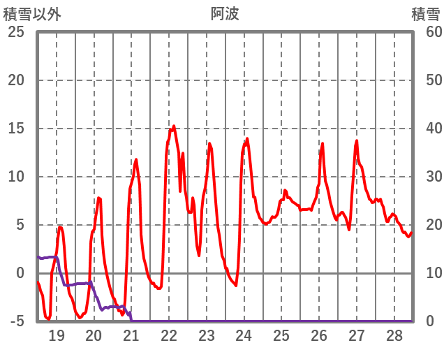 | 日 | 時 | 気温 | 降水 | 風向/風速 | 日照 | 積雪 | 降雪 |