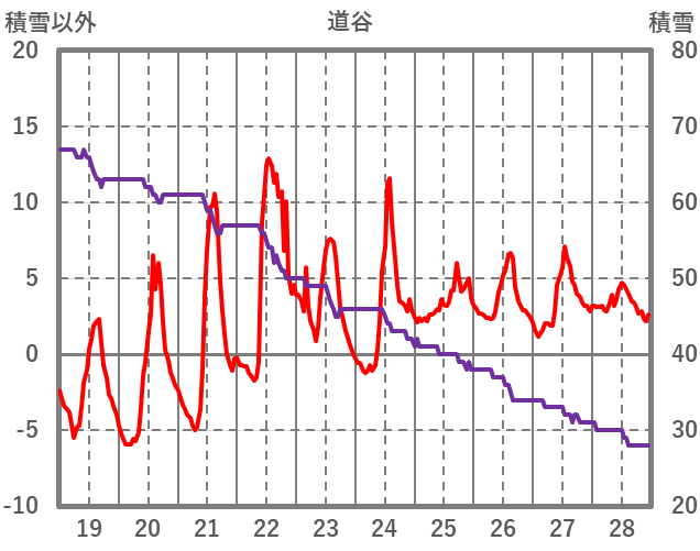 | 日 | 時 | 気温 | 降水 | 風向/風速 | 日照 | 積雪 | 降雪 |